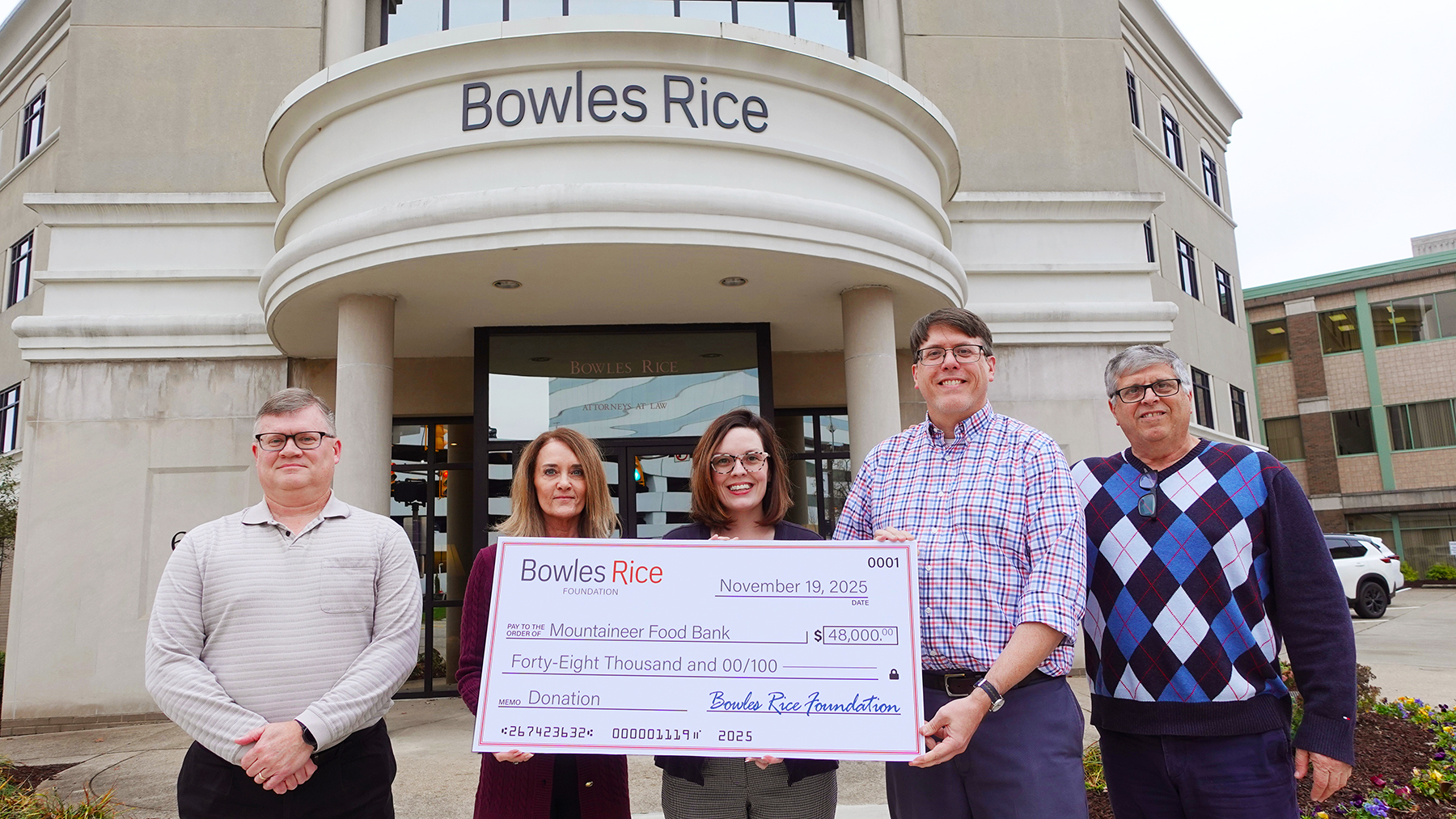 Charleston, W.Va. — The Bowles Rice Foundation has announced a $60,000 total charitable contribution to support food access across communities served by Bowles Rice LLP, including a significant $48,000 donation to Mountaineer Food Bank to directly benefit the West Virginia counties served by Bowles Rice offices in Charleston, Martinsburg, Morgantown, and Parkersburg. This contribution will help provide greater food security to the communities where Bowles Rice attorneys and staff live and work, reinforcing the firm’s longstanding commitment to supporting the well-being of its local communities.